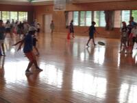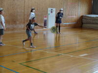 体育館には大勢の5,6年生が集まり、学年もクラスも関係なく4つのチームに分かれて試合を行いました。さすが高学年といった迫力のある試合で、投げる、捕る、避けるなど、随所で好プレイが見られました。