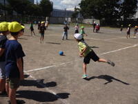 グラウンド委員会企画の「ワンバンドッジボール大会」、今日は3,4年生の番です。やはり、日頃の習慣で、一度地面についたボールには安心して手を出してしまうので、思いがけずアウトになっている人が多かったです。逆にルールを逆手にとって、ワンバンで当てにくいように近くに寄るという作戦もありました。子供たちの対応力の高さに驚きました。