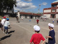 ワンバンドッジボール大会最終日の今日は、1,2年生の大会でした。いつものドッジボールとは違うルールのゲームなので、低学年には難しいように思いましたが、グラウンド委員会の5,6年生の適切なリードにより、楽しく活動する姿が見られました。