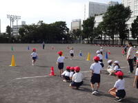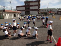 1年生が体育の授業で「リレー遊び」を行いました。コーンを回ったり、小型ハードルを飛び越したりと障害物も乗り越えて、リレーをしていました。途中で、どうしたらもっと早く走れるのかをみんなで考えて練習をしました。待っている間の応援も大切だと意見が出て、一生懸命応援もがんばりました。