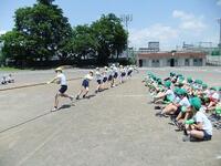 5年生は運動会で、つなひきをやります。学級対抗種目で、AチームBチームに分かれて、トーナメント戦を行います。もう一つ特徴的なことは、最初につなのところにいるのは、6人だけです。残りの10人は、つなから離れたところにいて、スタートの合図とともに、つなまで走ってきてつなひきに参加します。本番での決着が楽しみです。