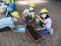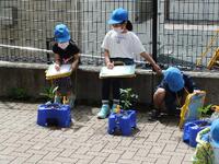 2年生が生活科の学習で、野菜を育てます。今日は、一人一人が持ってきた鉢に、自分の野菜を植えました。早速、観察カードに葉や茎などの様子を見て、スケッチをしていました。大きくなるのが、楽しみですね。
