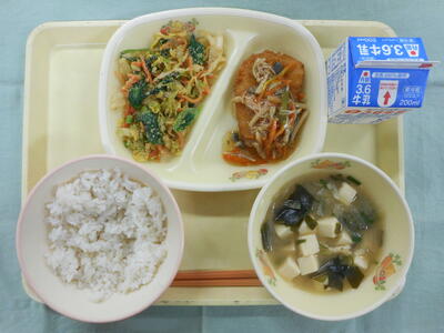 麦入りごはん 牛乳 たらの野菜あんかけ(たらフライ・野菜あん) ごま和え みそ汁