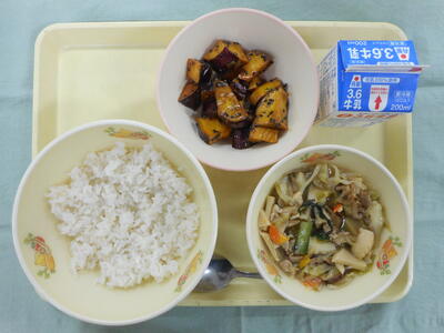 麦入りごはん 牛乳 中華丼の具 大学芋