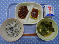 わかめご飯・牛乳・カラフル卵焼き・金時の煮豆・みそ汁