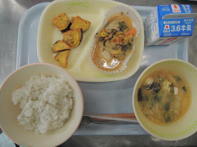 麦ご飯・牛乳・ほっけのちゃんちゃん焼き・大学芋・みそ汁