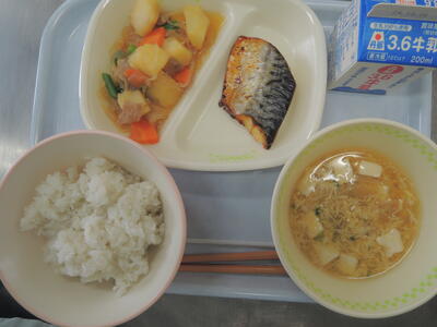 麦ご飯・牛乳・さばの塩麹焼き・肉じゃが・かきたま汁