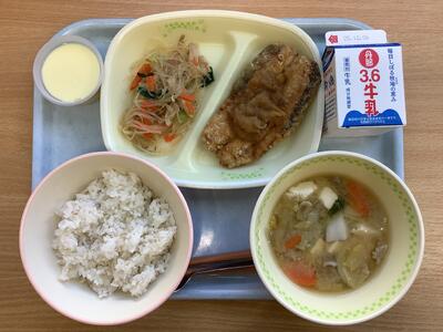 ハムと春雨の炒め物・豚汁・ミルクプリン