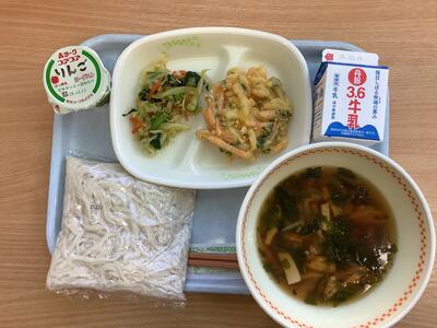 うどん・牛乳・うどん汁・野菜のかき揚げ