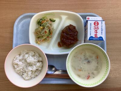麦ご飯・牛乳・ハンバーグ(ソース)