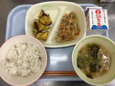 麦ご飯・牛乳・肉と野菜の塩麹炒め