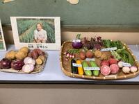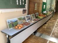 6月23日~27日は、ふるさと給食週間でした。ふるさと給食週間に合わせて、三島市の農と食のまちづくり課の企画で三島野菜を展示しました。展示した野菜は、三島市の給食に野菜を納品している農家さんからいただきました。農家さんたちの写真のパネルも一緒に展示していただきました。