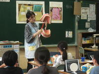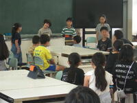 中学年では絵日記を見せながら、高学年ではプレゼンアプリを使いながら、伝えていました。