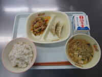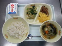 給食週間4日目は、三島市の郷土料理のおざくを出しました。三島市の野菜がたくさん入っています笑う