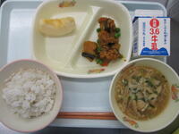 興奮・ヤッター!給食週間2日目は、三島市や静岡県でとれた冬野菜がたくさん入ったカレーライスです。