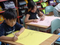 左 1年図工 「花咲じいさん」の世界を描きます。