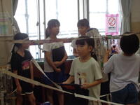 右 2年生活「つなげてつるして」紙を切って、自由につなげたり つるしたりして