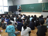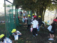 秋の自然、どんぐりや落ち葉を見つけに、北上中学校におじゃましています。