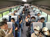 さあ、修学旅行へ出発です。バス車内、楽しそうですね。