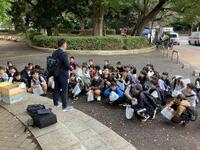 上野公園に着いて、記念撮影です。これから班別研修をスタートします。
