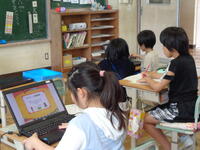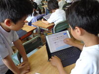 中 3組算数 計算問題に取り組んだり、ドロンブロックでタイピングに挑戦したりします。