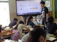 中、右 4年外国語「Where are you from?」正解国を地図で確認します