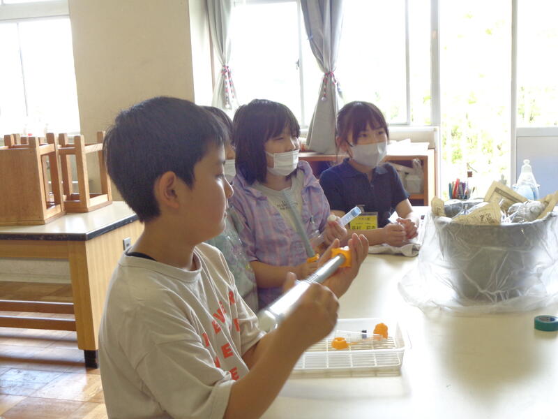 345組 理科 空気鉄砲の玉をいかにしたら遠くに飛ばせるか