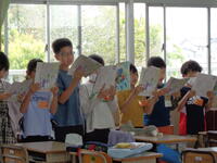 左 3年国語 「春風をたどって」グループで音読し合います。