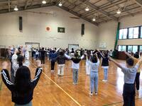 2日目、ラジオ体操と朝食の様子です。