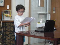 オンラインで校長室から放送しました。