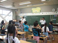子どもたち、教育実習の先生、ALTの先生が楽しそうに学びました。