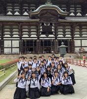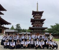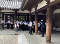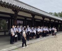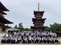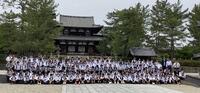 法隆寺到着。全員で記念写真。