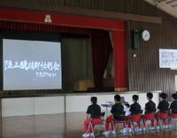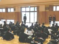 陸上部応援ムービーでは、これまでの陸上部の練習や大会の様子、顧問と後輩から応援メッセージが流れました。コロナ対策のため、会場には3年生だけが集合し、1,2年生は教室から参加しました。