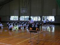 2年生は、体育で体力テストの反復横跳びに挑戦していました。