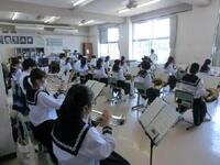 吹奏楽部の様子です。7月のコンクールに向けて、講師の先生からの指導を受け、頑張っています。