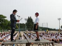 陸上部員一人一人が意気込みを語りました。校長先生からは「1秒でも、1cmでも、速く、高く、走ったり、跳んだり、投げたりして、ベストパフォーマンスを期待します」と励ましの言葉がメッセージが贈られました。