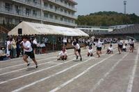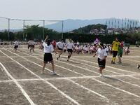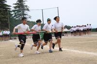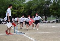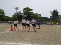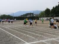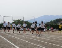 2年生の全員リレーです。バトンゾーンを工夫して使っていました。担任の先生も一緒に走っていました。