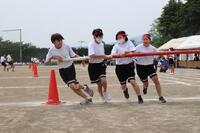 3年生学年種目「呪術旋回」です。練習時間が短かったのですが、4人で気持ちをそろえて走りました。