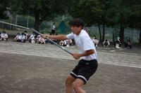 3年生学年種目「呪術旋回」です。練習時間が短かったのですが、4人で気持ちをそろえて走りました。