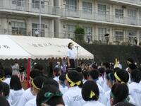 陸上部員一人一人が意気込みを語りました。校長先生からは「1秒でも、1cmでも、速く、高く、走ったり、跳んだり、投げたりして、ベストパフォーマンスを期待します」と励ましの言葉がメッセージが贈られました。