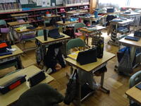 3月11日、三島市シェイクアウト訓練に参加しました。地震による揺れを感じたという想定で、授業中のその場所で約1分間、地震の揺れから身を守る安全確保行動(まず低く、頭を守り、動かない)を実践しました。