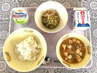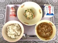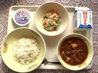 *牛乳 *麦入りごはん *麻婆豆腐 *中華サラダ *ヨーグルト