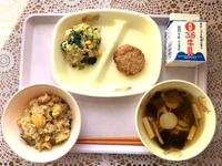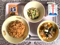 *牛乳 *炊き込みごはん *厚焼玉子 *茎わかめのきんぴら *国清汁