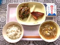 *牛乳 *麦入りごはん *赤魚の西京焼き *五目きんぴら *どさんこ汁