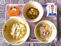 *牛乳 *コーンライス *鶏肉のホワイトソース *野菜のスープ煮