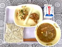 *牛乳 *わかめごはん *ししゃもフライ *切干大根の焼きそば風 *みそ汁