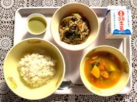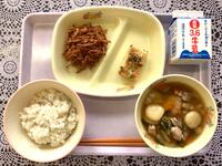 *牛乳 *麦入りごはん *含め煮 *みそ汁 *静岡県産納豆