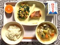 *牛乳 *麦入りごはん *たらと大豆のレモンソース和え *どさんこ汁 *アーモンドフィッシュ