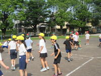 1年生は教室で道路を歩くときの約束や気を付けることを勉強したあと、実際に道路に出て横断歩道を渡る練習をしました。しっかり左右を確認して、安全に渡ることができました。