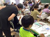 「社会を明るくする運動」のポスターづくりに励む子供たちです。